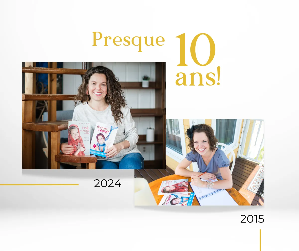 En revisitant deux photos prises à dix ans d'intervalle – l'une capturant mes débuts en 2015 et l'autre aujourd'hui, en 2024 – j'ai réalisé à quel point ce chemin a été transformateur. Lors de ma dernière séance photo, j’ai voulu honorer la femme que je suis devenue, me reconnecter à mes premiers livres et accepter chaque étape de mon parcours, même les moments de vulnérabilité. Cette remise en ligne de mes deux premiers ouvrages, c’est une manière de célébrer ce cheminement et de continuer à avancer avec gratitude.